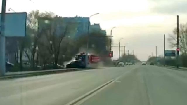 Момент ДТП на Беляевской в Оренбурге с пожарной машиной