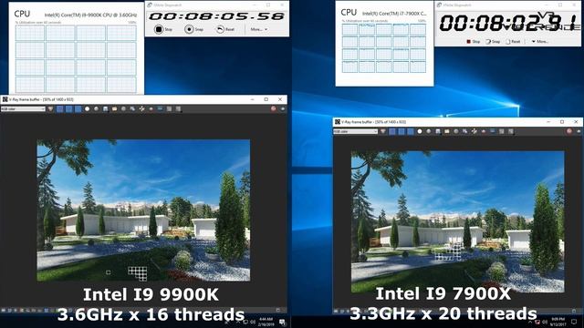 3Dsmax Vray 3 4 Render Time Exterior Intel I9 9900K vs I9 7900X