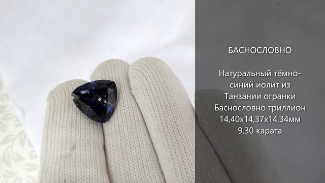 Натуральный тёмно-синий иолит из Танзании огранки Баснословно триллион 14,40x14,37x14,34мм 9,30 карата. Драгоценные камни Баснословно. Цветные ювелирные вставки высокоточной ручной русской огранки.