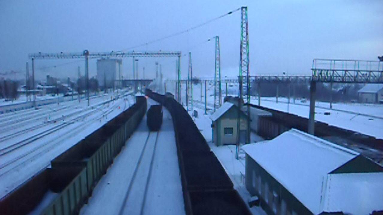Тепловоз 2ТЭ10М даёт "медведя", отправляясь со станции.