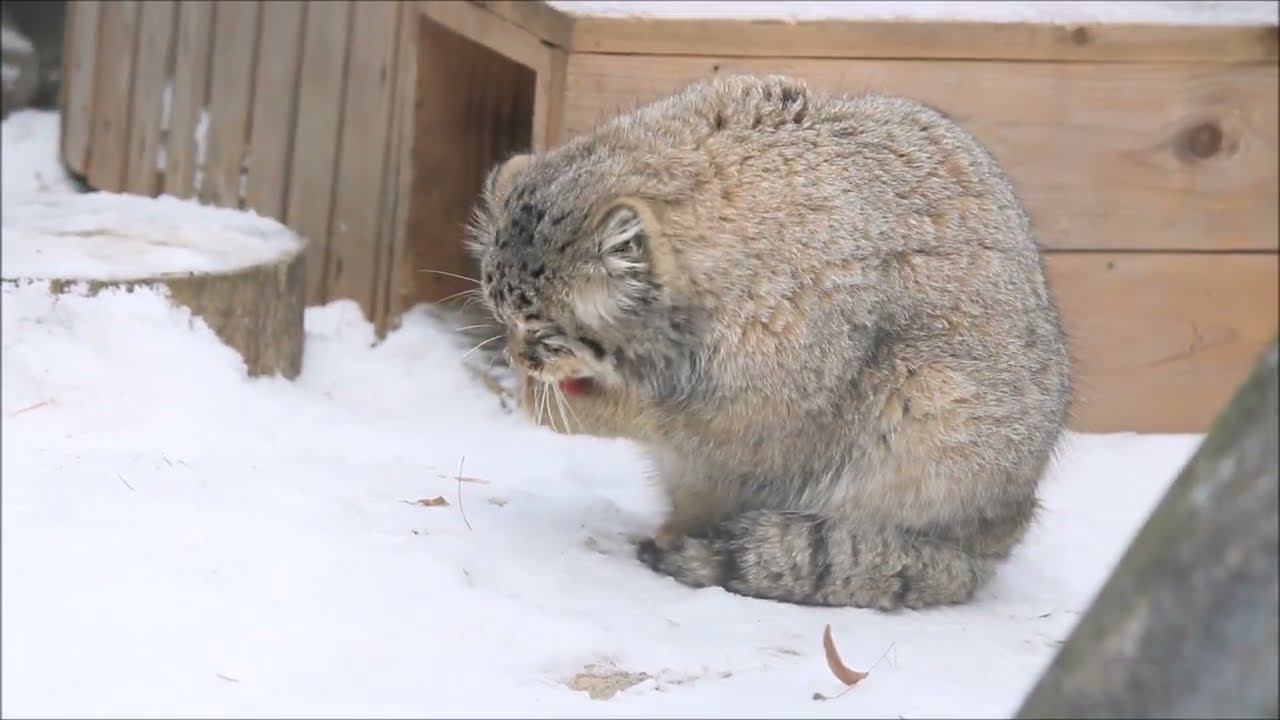 Манул Зеленогорск проверил свою миску, пообщался, поставил лапки на хвостик и стал умываться 7.11.23