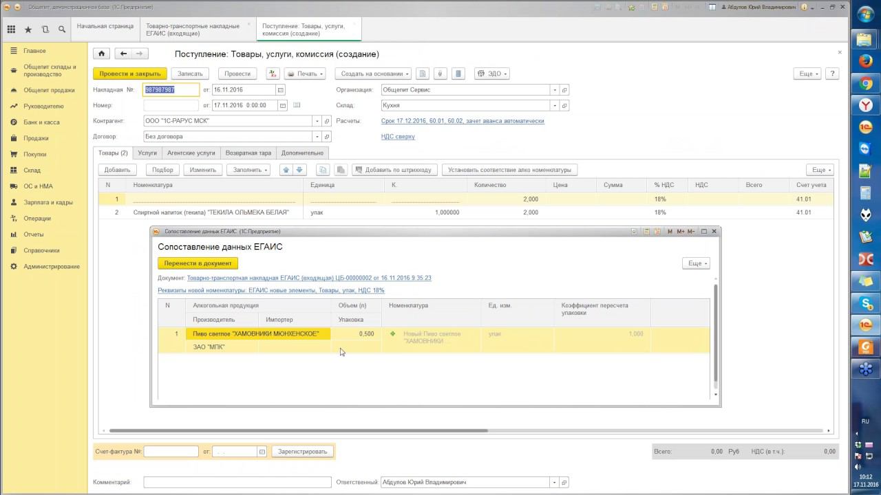 Вебинар от 17 ноября 2016 года «Новые требования по работе с ЕГАИС для предприятий общепита (ведение остатков, списание, постановка на баланс) и их отражение в решении «1С:Предприятие. Общепит ред. 3»