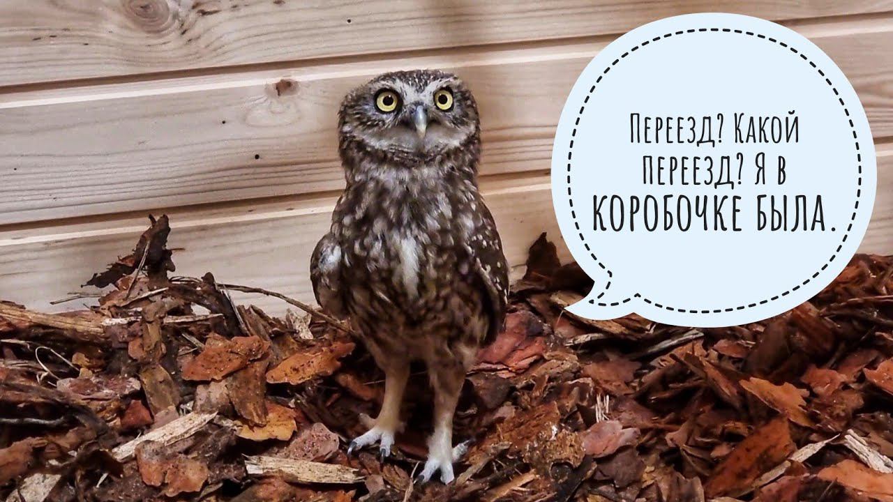 Филин Ёль обживается в вольере. Сычи Лучик и Кутуша въехали в нумера. Чучундрий немного растерялся