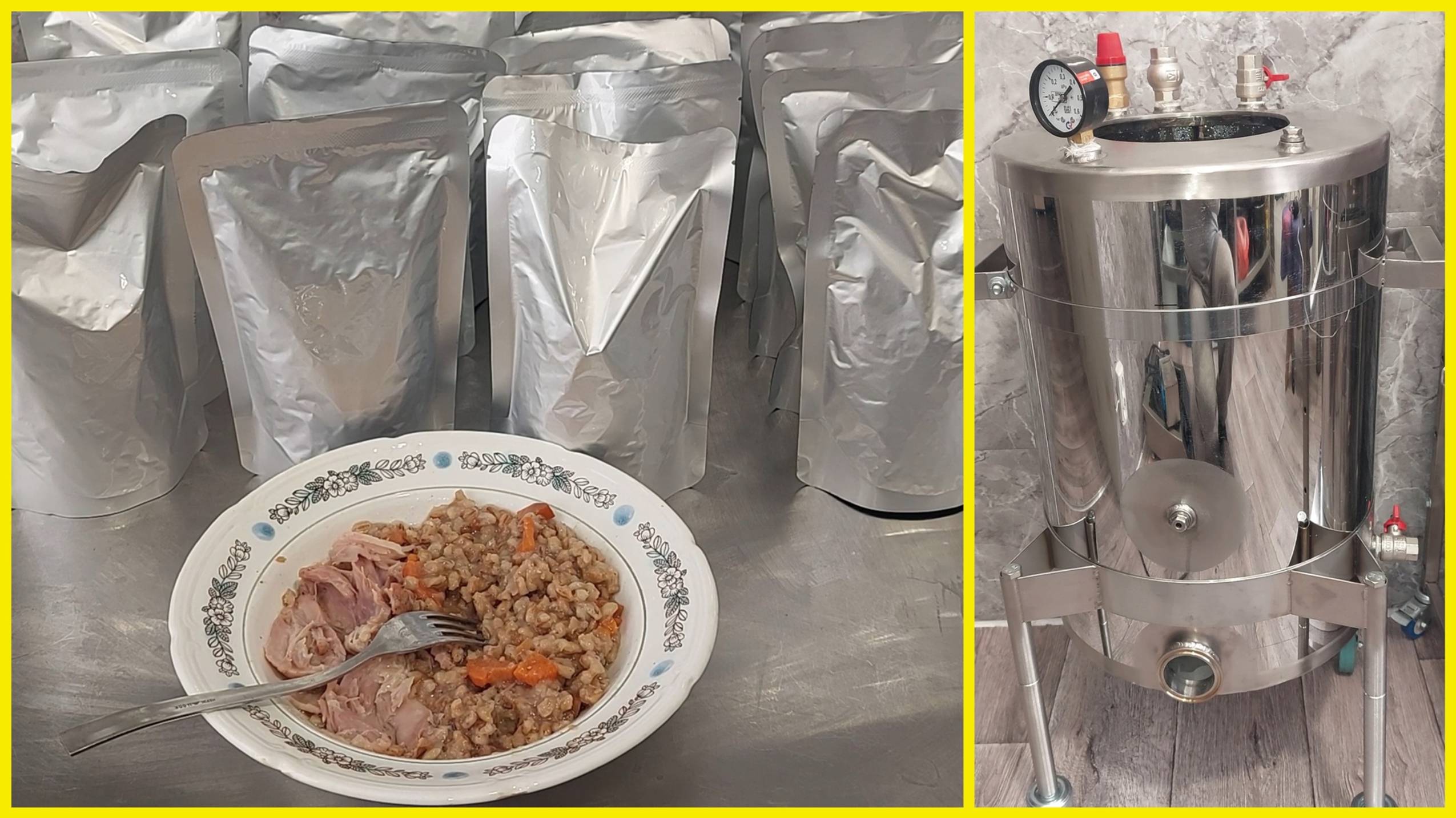 Простой рецепт готового обеда в автоклаве Нефор в реторт пакетах. Каша перловая с курицей.