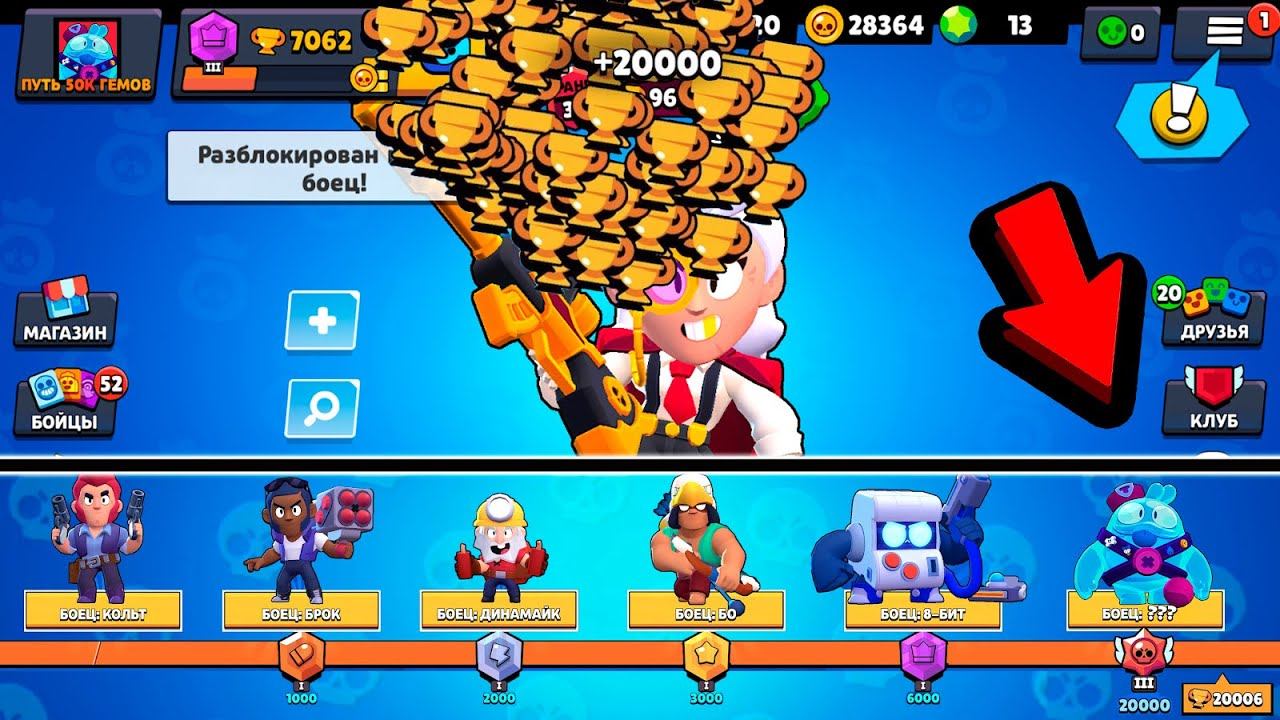 БЕЗ ОСТАНОВКИ ПОДНЯЛ 20000 КУБКОВ И ПОЛУЧИЛ ЭТО! ПУТЬ 50К ГЕМОВ В БРАВЛ СТАРС