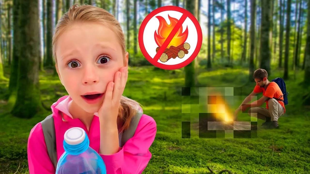 Настя и папа учат правила безопасной прогулки в лесу