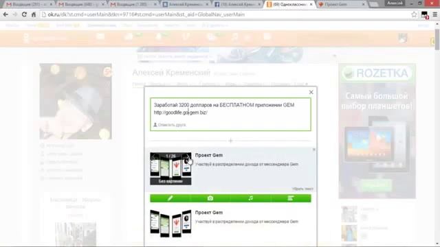Распространяйте БЕСПЛАТНОЕ Мобильное приложение GEM и Зарабатывайте! Регистрируйтесь по ссылке http://tatiana1951.go-gem.biz/ Обзор и активация кабинета http://www.youtube.com/watch?v=ta0OxWFG1PQ Короткая презентация http://www.youtube.com/watch?v=MRCWePOgqH0 Видео инструкция по оплате http://www.youtube.com/watch?v=PEMfVVK6v6g После регистрации свяжитесь со мной в скайпе:tany5113 GEM. Как создать статусы в Социальных сетях и Скайпе