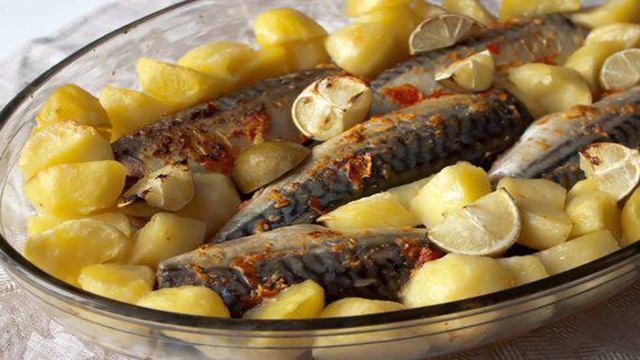 Запеченная острая скумбрия с картофелем