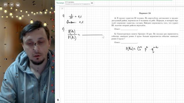 Вариант №24 Вероятность (задания 4-5) из Ященко 36 вариантов 2026 ЕГЭ профиль по математике.