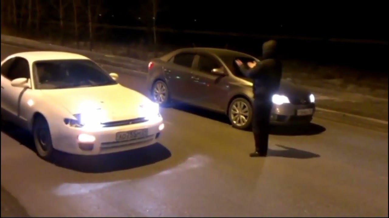 illegal street drag. Celica vs Cerato