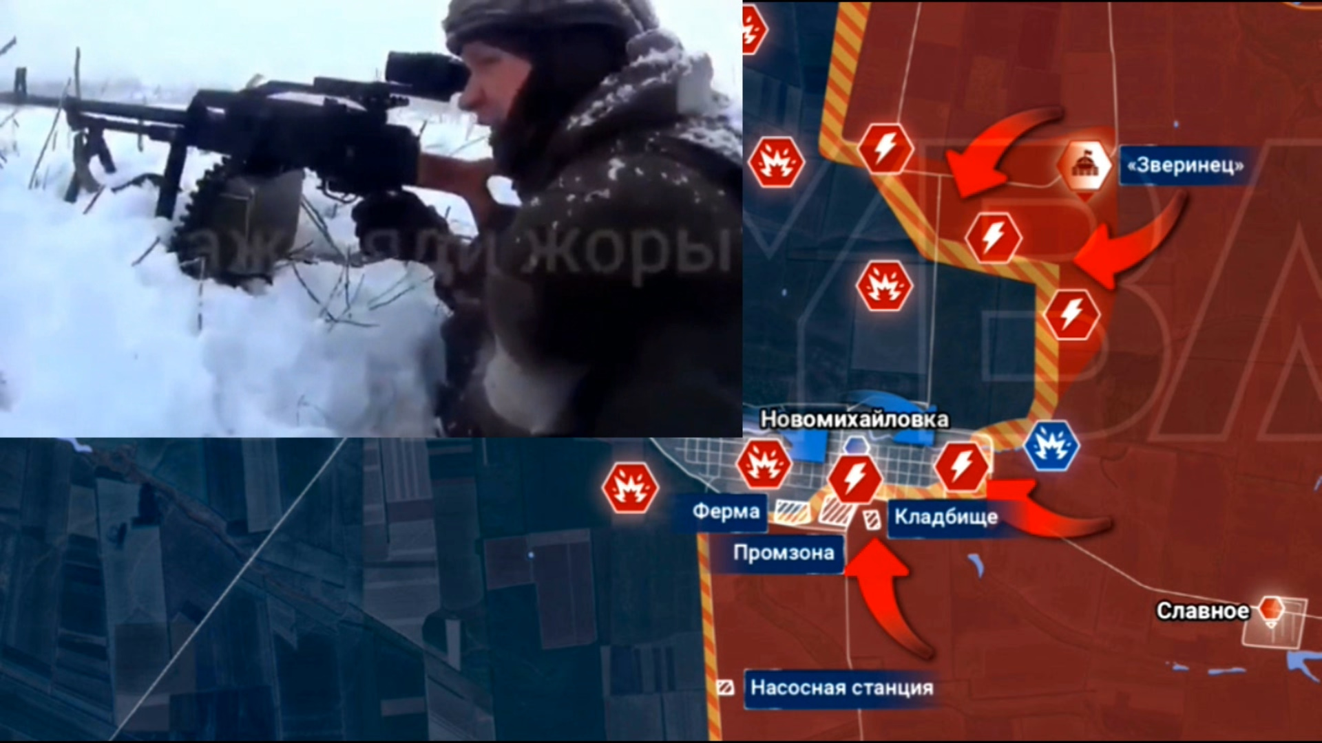 Карта боевых действий. Тяжелый стрелковый бой под Новомихайловкой