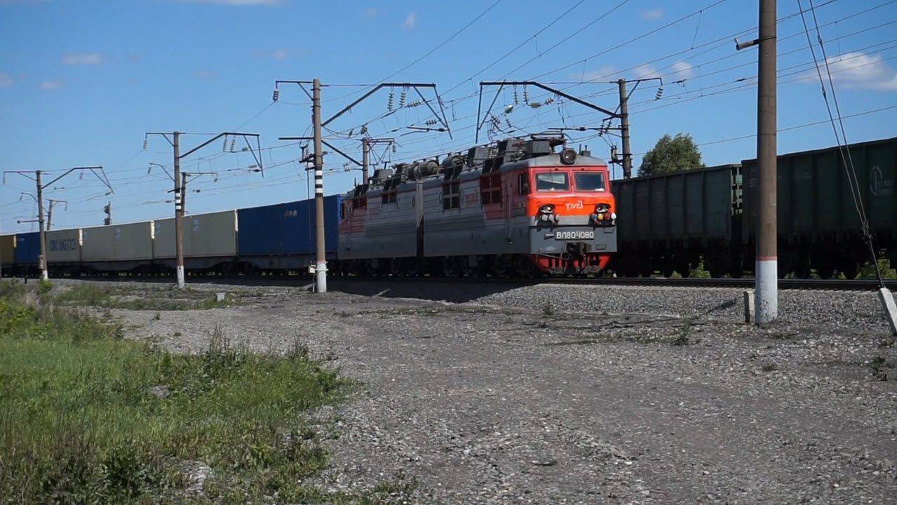 Электровоз ВЛ80С-1080 с контейнерным поездом.