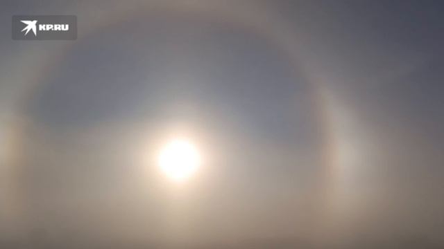 Солнечное гало возникло 14 января на рассвете в Новосибирске, Россия