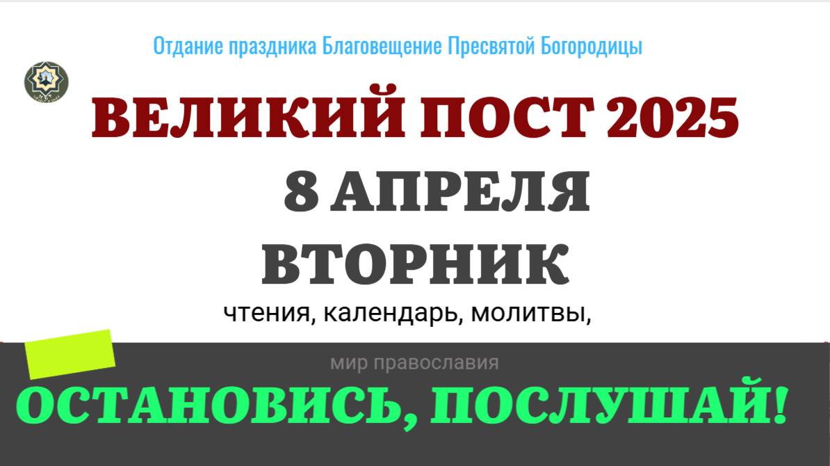 8 АПРЕЛЯ ВТОРНИК ЧТЕНИЯ НА ПОСТ КАЛЕНДАРЬ ДНЯ 2025 #евангелие