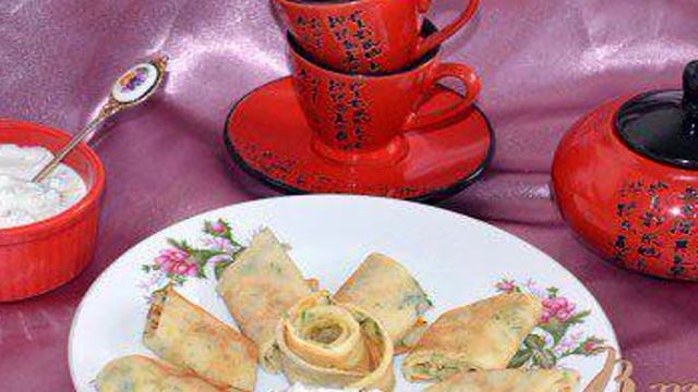 Блины с укропом и соусом Дзадзыки
