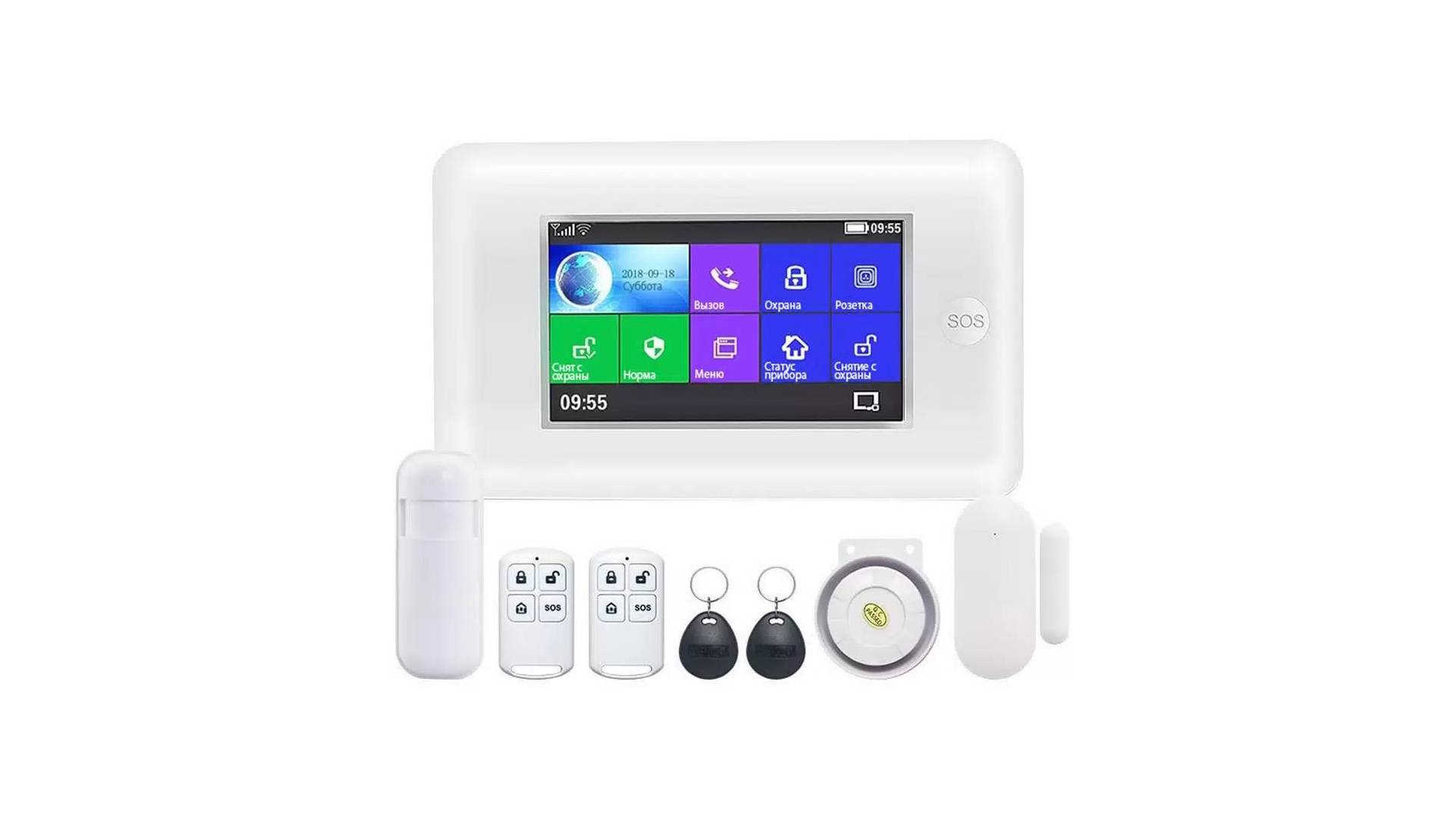 GSM-WiFi TUYA сигнализация Страж Галактика-GSM предназначена для оповещения пользователей о проникновении в охраняемое помещение. Сигнализация работает как через сотовую связь, так и через Интернет по сети Wi-Fi 2.4 ГГц. При работе через GSM-канал пользователям отправляются тревожные SMS-сообщения и совершаются вызовы на запрограммированные номера телефонов (до 5 номеров). При активном подключении к Wi-Fi сети с доступом в Интернет пользователи получают тревожные уведомления в бесплатное мобильное приложение для смартфонов (Android и iOS). В системе можно использовать до 90 беспроводных датчиков и пультов ДУ., при этом в комплект уже включены 2 беспроводных датчика (движения и открытия двери), а также по 2 пульта ДУ и RFID-брелка. Сигнализация оснащена двумя сиренами — встроенной в центральный блок, а также внешней проводной сиреной. Встроенный микрофон позволяет прослушивать аудиофон охраняемого помещения при срабатывании тревоги. Встроенный аккумулятор служит для автономной работы системы длительностью до 10 часов при отключении питания. Кроме того, сигнализация оповещает пользователей сообщениями о сбоях в питании - https://recdvr.ru/product/besprovodnaja-tuya-gsm-i-wi-fi-signalizacija-strazh-galaktika-gsm/ Сигнализация проста в монтаже и эксплуатации. Меню настроек, голосовое оповещение и мобильное приложение выполнены на русском языке. Поддерживается добавление в мобильное приложение беспроводных Wi-Fi камер, что позволит дополнить сигнализацию системой видеонаблюдения. Особенности Два канала оповещения. Сигнализация отправляет уведомления на смартфон по Wi-Fi-сети 2,4 ГГц с доступом в Интернет, а также звонит и отправляет SMS через sim-карту сотового оператора. Оповещение до 5 пользователей. При срабатывании сигнализации дозвон и отправка тревожных SMS-сообщений осуществляется на 5 номеров телефонов пользователей. Встроенный RFID-считыватель расположен на центральном блоке и используется для быстрой постановки и снятии сигнализации с охраны. 2 RFID-метки поставляются в комплекте. 2 беспроводных датчика в комплекте. Датчик движения, датчик открытия двери (окна) два пульта ДУ, две RFID-метки и проводная сирена поставляются в комплекте. Мобильные приложения Tuya Smart и Smartlife доступны для смартфонов с Android и iOS и используются для настройки и управления сигнализацией на русском языке. Оповещение об отключении питания центрального блока от сети 220 В приходит пользователям как в мобильное приложение, так и в сообщении SMS. 2 сирены в комплекте. Сигнализация оснащена как встроенной в центральный блок сиреной, так и проводной выносной сиреной с кабелем длиной 1 метр. Контроль уровня заряда батарей в датчиках. При низком уровне заряда батарей охранных датчиков система сообщит об этом тревожным сообщением на экране центрального блока. Встроенный аккумулятор центрального блока обеспечивает автономную работу сигнализации продолжительностью до 10 часов. Встроенный цветной 4.3-дюймовый ЖК-дисплей оснащен сенсорным управлением и позволяет настраивать и контролировать работу сигнализации. Встроенный микрофон в корпусе центрального блока. При срабатывании тревоги Вы будете слышать все, что происходит в месте установки сигнализации. Поддержка работы по протоколам TCP и UDP через GPRS-соединение позволяют отправлять тревожный сигнал с сигнализации на пульты охранных предприятий. Голосовые вызовы с центральн
