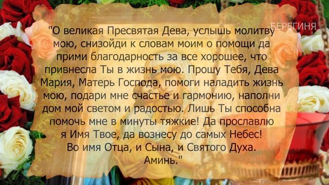 В этом видео молитва о счастье, чтобы легче пережить тяжёлые времена... Молитва к Пресвятой Деве, заступнице рода человеческого. Мы все мечтаем о счастье, и чтобы святые нас услышали надо молится. Дорогие мои зрители, всем приятного просмотра. Ссылка на это видео - https://clck.ru/drAq5 Молитва о счастье: "О великая Пресвятая Дева, услышь молитву мою,снизойди к словам моим о помощи да прими благодарность за все хорошее, что привнесла Ты в жизнь мою. Прошу Тебя, Дева Мария, Матерь Господа, помоги наладить жизнь мою, подари мне счастье и гармонию, наполни дом мой светом и радостью. Лишь Ты способна помочь мне в минуты тяжкие! Да прославлю я Имя Твое, да вознесу до самых Небес! Во имя Отца, и Сына, и Святого Духа. Аминь." Картинки, футажи, коллажи, клипарты, анимации - авторские Видео создано и обработано в видеоредакторе - Adobe Premiere Pro,Adobe After Effects, Photoshop ==================================================== #МоливаПресвяойДеве #молитваосчастье #молитвачтобпережитьяжелыевремена #молитваБогородице #Берегиня ===================================================== Подпишись - https://www.youtube.com/channel/UCm-0... ★Жми на палец вверх!) ★Жми на колокольчик) ★Оставляй своё мнение в комментариях ===================================================== Нажимая на "Мне нравится" и "Рассказать друзьям" - вы помогаете каналу в развитии. Спасибо. Поделись этим видео с друзьями -