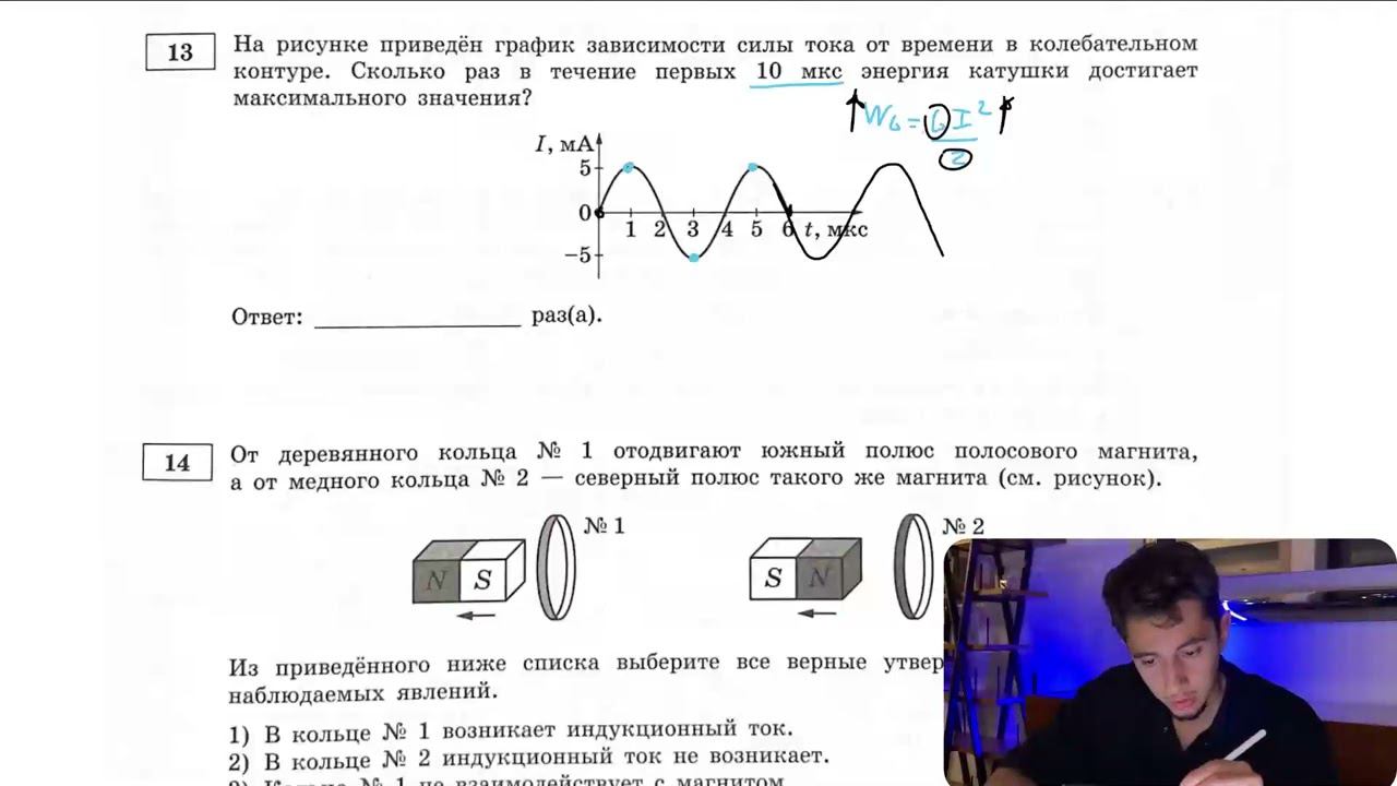 На рисунке приведён график зависимости силы тока от времени в колебательном контуре. Сколько раз - №