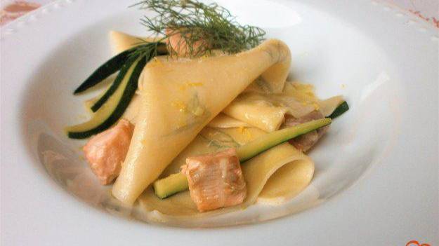 Паста платочки с сёмгой и цуккини
