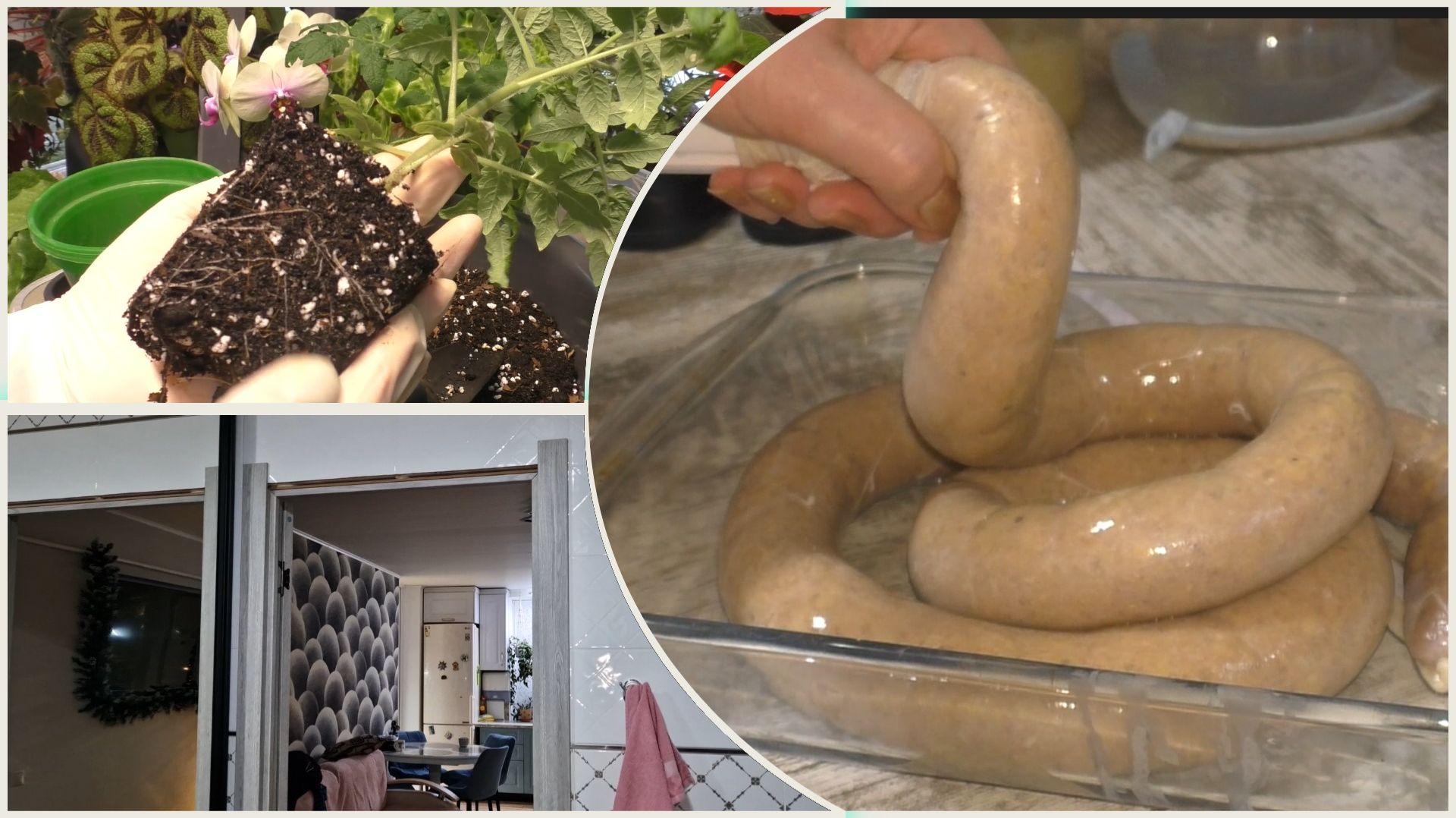 Мои первые домашние колбаски. Пересадила помидоры. Доделали дверные раскладки в ванной