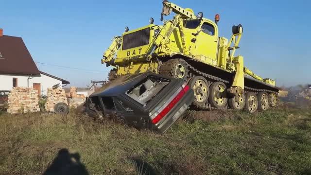 Мощный БАТ-М давит автомобиль Пежо!