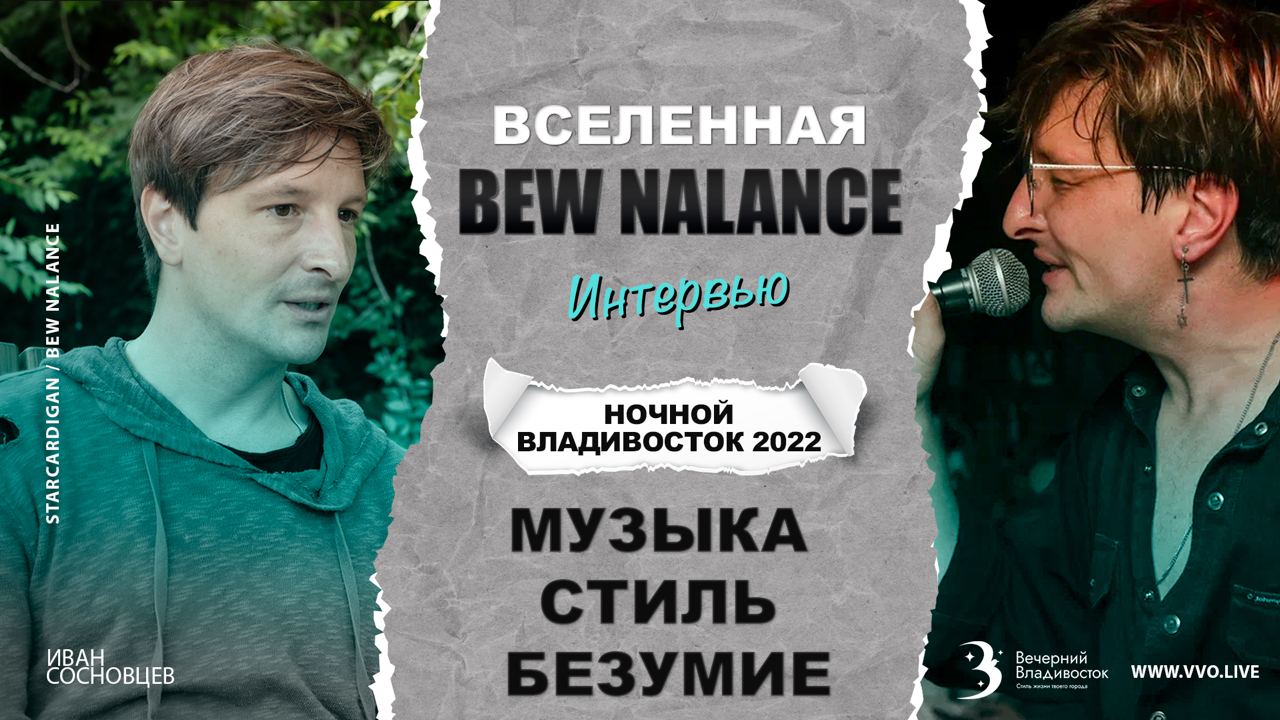Интервью фронтмена Starcardigan Ивана Сосновцева, создавшего сайд-проект Bew Nalance, «Вечернему Владивостоку». 22 июля 2022 года Bew Nalance дал концерт в Laundry. До лайва мы поговорили с Иваном о творчестве, музыкальном вкусе, вселенной Bew Nalance и самости Starcardigan: 00:00 – Тизер и трек «Отель»; 01:13 – О связи с Владивостоком и Москвой; 03:00 – «Starcardigan раздевает песни. Bew Nalance — от Retro Wave до лютого Techno»; 04:35 – «Сегодня могу послушать Игоря Талькова, завтра — Джеймса Блейка»; 05:33 – Дискотека Live; 05:50 – «Неоновый царь» — клип, который сделали крутейшие профессионалы. Там с ребятами происходит настоящее безумие»; 10:00 – «Ярлык «андеграунд» меня подбешивает» + монетизация творчества; 12:33 – Нужно ориентироваться на потребности массовой аудитории? Общее у Starcardigan, Bew Nalance и Zivert; 15:42 – «Bew Nalance никого не слушает, а Starcardigan — такая змейка, которая туда заползла, сюда… Но при этом замороченная на самости»; 16:13 – «Я знал, что мы крутые»: о переезде в Москву и смеси тщеславия с честолюбием; 17:45 – Можно ли построить музыкальную карьеру во Владивостоке? 18:26 – «Вопрос, который задавал Илья Лагутенко в эпоху V-ROX»; 20:41 – Азиатская история с подачи Ильи Лагутенко, которая была «вау». В России это в ближайшем будущем не повторит никто; 21:45 – О съемках клипа во Владивостоке на песню с владивостокским вайбом; 23:28 – Благодарности и «Стильный дед». Чем уникален Владивосток? Кроме своей аутентичной природы, город всегда славился музыкой. Наконец, после трека группы Мумий Тролль – «Владивосток 2000», ворвалась новая волна исполнителей. Одним из ярчайших явлений стала группа Starcardigan, которую создал Иван Сосновцев. Несколько лет назад они переехали в Москву. Параллельно этому проекту Иван Сосновцев сделал сайд-проект Bew Nalance. «Вечерний Владивосток»: официальный сайт — https://vvo.live/ ВКонтакте — https://vk.com/vvo.live Telegram — https://t.me/vvolife Oдноклассники — https://ok.ru/vvo.live