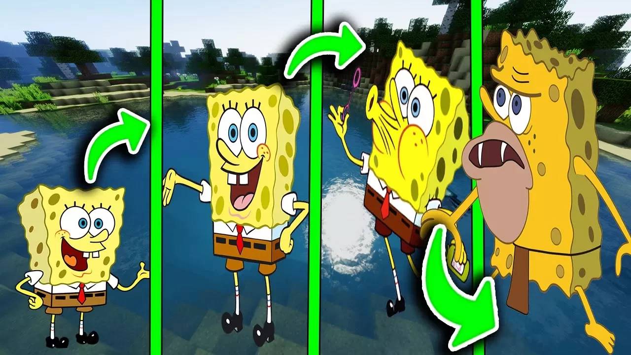 КАК МЕНЯЛСЯ ГУБКА БОБ И ЕГО ЖИЗНЕННЫЙ ЦИКЛ В МАЙНКРАФТ | ЭВОЛЮЦИЯ ГУБКИ БОБА MINECRAFT