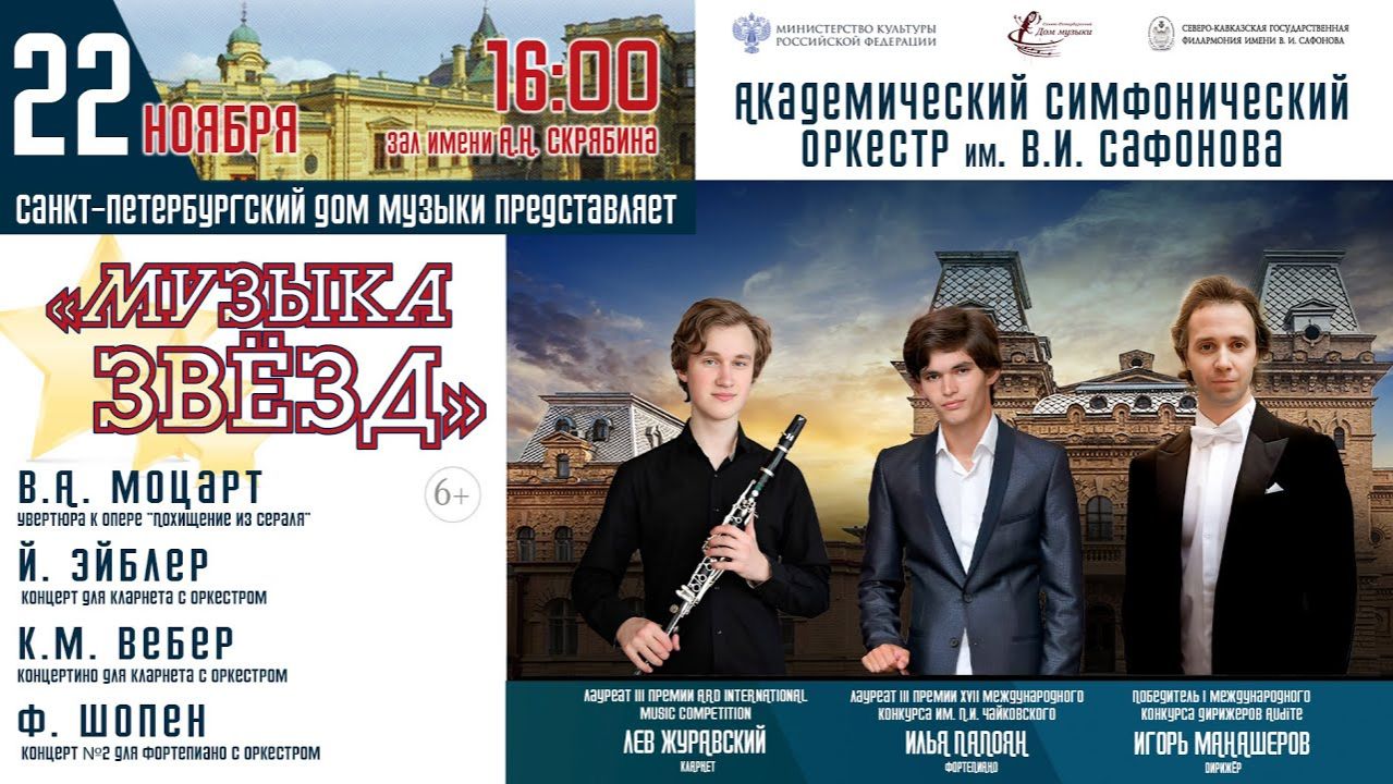 Концерт Санкт-Петербургского Дома музыки "Музыка звезд" Академический симфонический оркестр Северо-Кавказской филармонии им. В.И. Сафонова Дирижёр -- Игорь Манашеров Кисловодск, 22.11.25 Для сотрудничества по спец.проектам: Booking & PR: +79852267676, pr@tabriz.ru Друзья, так же подписывайтесь на официальные группы в других социальных сетях: Личная страница ВКонтакте: https://vk.com/ilia.papoian.official Официальная группа ВКонтакте: https://vk.com/ilia.papoian_official.group Официальная группа на Facebook: https://www.facebook.com/groups/ilia.papoian.official.group/?notif_id=1720943556405679¬if_t=groups_member_joined&ref=notif Официальная страница в Instagram: https://www.instagram.com/ilia.papoian.official?igsh=MXRzbWJmOWdmNGY0 Официальный канал на YouTube: https://www.youtube.com/@juliaartur1