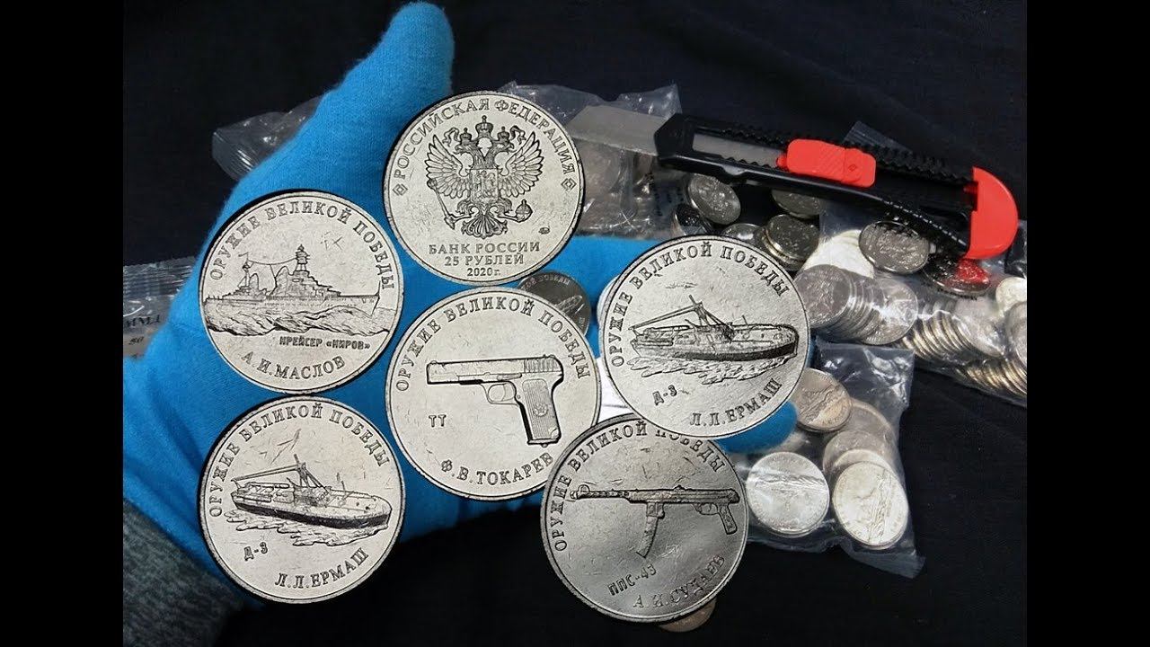 Вскроем пакеты Московского Монетного Двора и в реальном времени увидим монеты и их качество чеканки. Это второй выпуск 25 рублей Конструторы Оружия Победы, 2020 год, набор из 5 монет: 1. П.М. Горюнов, станковый пулемет СГ-43; 2. Л.Л. Ермаш, торпедный катер типа Д-3; 3. А.И. Маслов, крейсер "Киров"; 4. А.И. Судаев, пистолет-пулемет ППС-43; 5. Ф.В. Токарев, пистолет ТТ. Тираж каждой монеты: 1 000 000 экземпляров Приобрести 2 комплект можно по ссылке: http://coinsmoscow.ru/p20563 А 1 выпуск из 9 монет 2019 года по этой: http://coinsmoscow.ru/p20460 Каталог всех монет РФ и СССР с фото: http://coinsmoscow.ru/p705 Наши соц сети (подпишитесь, на случай если канал заблокируют, смотрите в них ссылку на новый канал. А так же в соц сетях дополнительная информация о монетах): http://vk.ru/coinsmoscow http://instagram.com/coinsmoscow