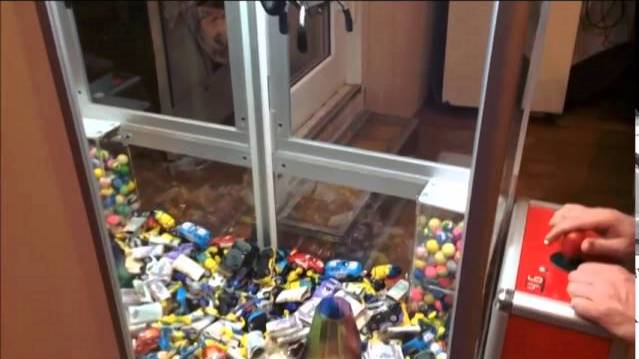 Денежная микро поймай-ка. В месте с брелками в аппарат закинули деньги скрученные в трубочку что в несколько раз подняло выручку. Теги: Прибыльный автомат,денежная хватайка,кран машина с деньгами,доходный бизнес