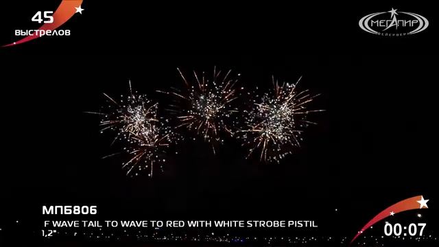 МПБ806 Веерная батарея салютов SHOTS F WAVE TAIL TO WAVE TO RED WITH WHIT