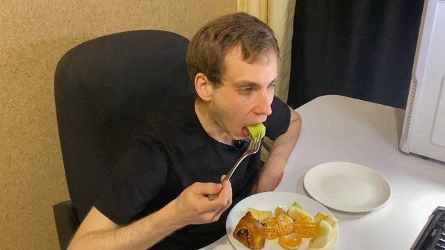 Фрукты + булочка с маком 😌