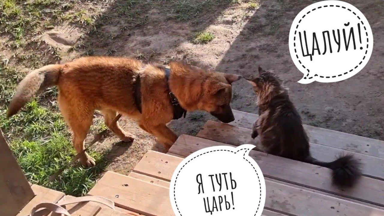 Кошка Морошка познакомилась с рыжим Псом, пока никто не видел