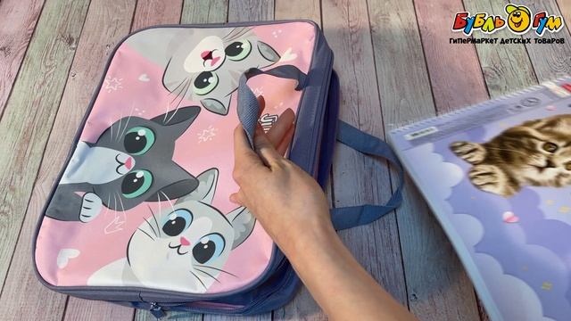 327498 Папка А4 JUNGER Веселые котята с молнией для труда и ИЗО с ручками серо-розовая
