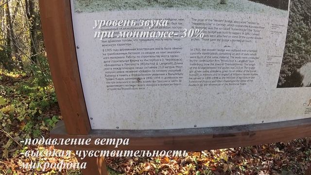 В этом видео я прокатился по красивому лесу Раминтенской пущи, заехал на "дачу Геринга" и по пути затестил режимы аудио и видео моей новой камеры Yi 4K. Аудио: -высокая чувствительность микрофона; -низкая чувствительность микрофона; РЕЖИМ: -стерео; -подавление ветра. Видео: -матричный; -центровзвешанный; -точечный замеры экспозиции. Видео про лису: https://www.youtube.com/watch?v=YlHx_y08DUc В поисках чертового камня: https://www.youtube.com/watch?v=61Pr3ZSTfao&t=50s Канал Александр Неделько: https://www.youtube.com/channel/UCGj7pbmf09DmTc30CDhnwsg Тайны калининградских немецких дач: https://www.mdregion.ru/o-kladoiskatelstve/28-rasskazi-kladoiskatelstvo/3025-tainy-kaliningradskih-nemetskih-dach.html Проданное наследие: «дача Геринга» в Роминтене: https://rugrad.eu/interview/913028/ #Роминтенскаяпуща #ДачаГеринга #камераYi4K #RominterHeide Музыка: Niwel - Bad Love https://www.youtube.com/watch?v=fT4o1Edjwtc