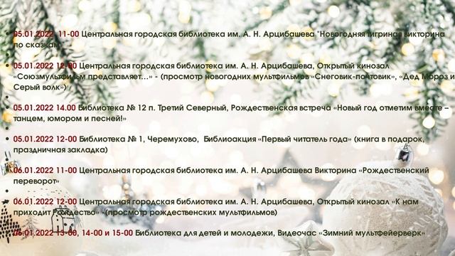 Календарь мероприятий на новогодних праздниках в Библиотеках Североуральского городского округа