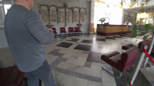 После недолгой фотосессии, время как всегда поджимало, мы отправились в сторону пансионата Альянс в замечательную столовую "На Водах". Большой неожиданностью было когда к нам в столовой подошёл менеджер этого пансионата и предложил ознакомить с кое какой информацией об этом пансионате. Люда осталась выбирать завтрак, а я двинулся за менеджером по вестибюлю слушая его рассказ и записывая на камеру. К сожалению почти в самом начале нашего экскурса, на моём передатчике разрядилась батарея и видео дальше записалось без звука.