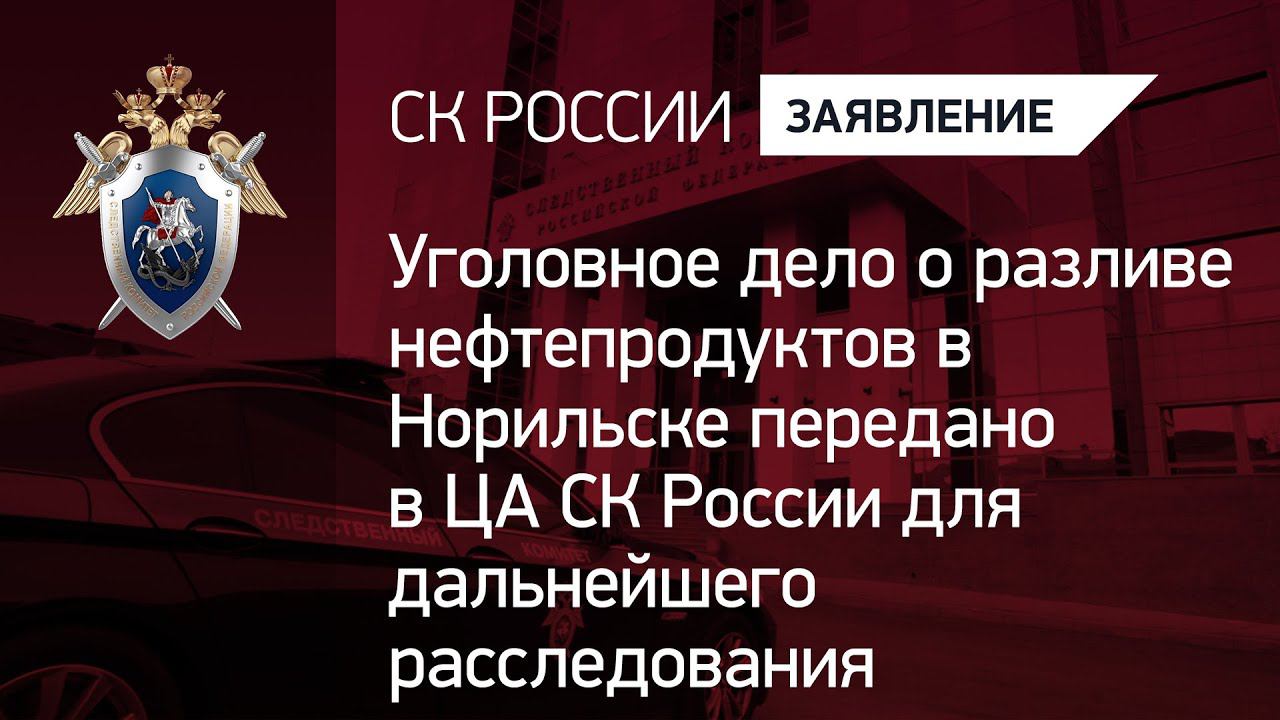29 мая 2020 года на территории ТЭЦ-3 АО «Норильско-Таймырская энергетическая компания» в результате просадки бетонной площадки и разрушения резервуара, разлилось около 20 тысяч тонн нефтепродуктов на значительной площади, которые попали в грунт и водные объекты в районе Надежинского металлургического завода ЗФ ПАО «ГМК «Норильский никель», повлекшие загрязнение и причинение вреда окружающей среде. Три уголовных дела, возбужденные по статьям ст. 254 (порча земли), ст.246 (нарушение правил охраны окружающей среды при производстве работ) и переданное из органов внутренних дел уголовное дело по ст. 250 УК РФ (загрязнение вод), объединены в одно производство. Его расследование Александр Бастрыкин поручил следователям Главного следственного управления СК России. Произведен осмотр места происшествия, изъяты образцы грунта, произведена выемка документов, регламентирующих порядок эксплуатации хранилища аварийного дизельного топлива, проводятся другие необходимые следственные действия. В рамках уголовного дела задержан начальник котлотурбинного цеха ТЭЦ-3 АО «НТЭК» Вячеслав Старостин, который от дачи показаний отказался. Назначены строительно-техническая, экологическая и ряд других судебных экспертиз, по результатам которых, в том числе будут установлены сумма ущерба и причины происшествия. В настоящее время следователи начали допрашивать лиц, в том числе должностных, ответственных за своевременное информирование населения о чрезвычайной ситуации.