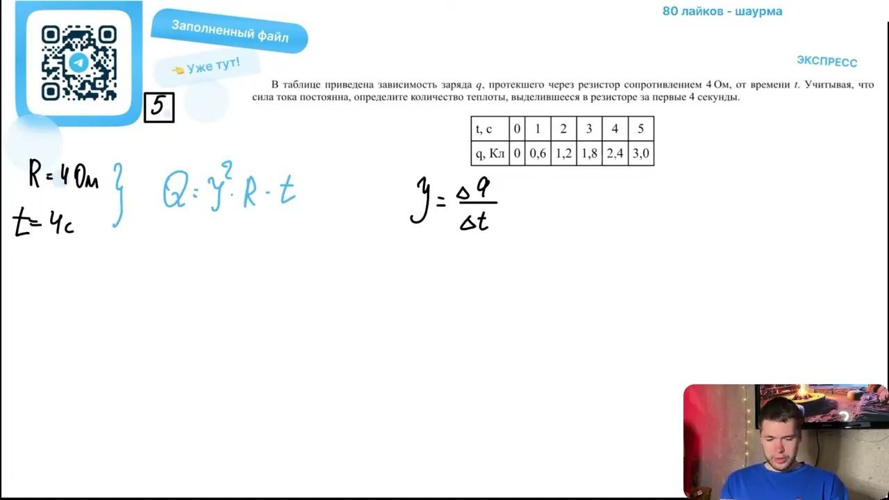 В таблице приведена зависимость заряда q, протекшего через резистор сопротивлением 4 Ом, от - №