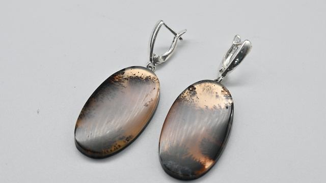 Серьги агат моховой на зеркальной подложке 20*35мм. Арт: тв304003