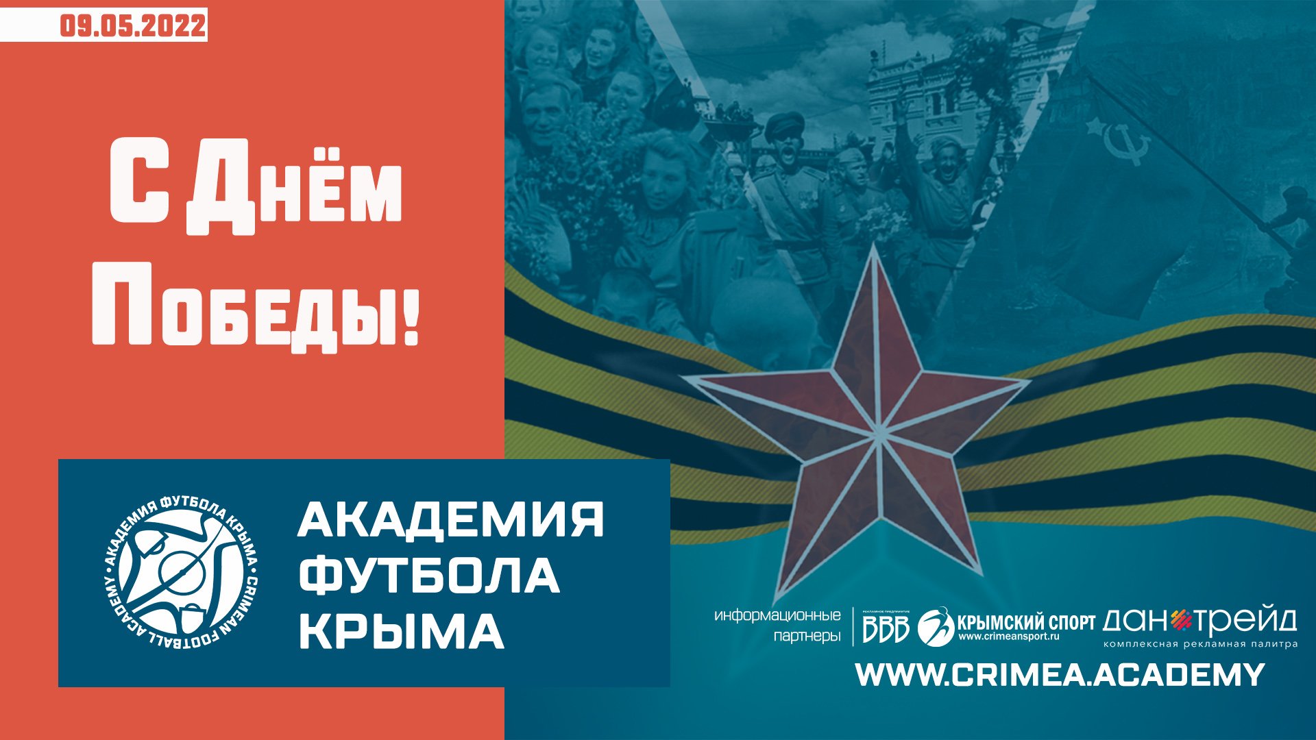 77 лет назад, благодаря героизму наших родных и близких, Победой закончилась Великая Отечественная война. Академия футбола Крыма поздравляет всех с Днём Победы – Праздником, который всегда будет со слезами на глазах. Горькими – от того количества потерь, которые наш народ понёс за 1418 дней, что длилась война. И радостными – от Победы, давшей нам возможность сохранить главные ценности нашей жизни – веру, надежду и любовь, которые для нас остаются неизменными во все времена. Берегите друг друга, не забывайте, какая цена заплачена за то, чтобы мы могли «беспошлинно видеть восход»! С Праздником, с Днём Победы!