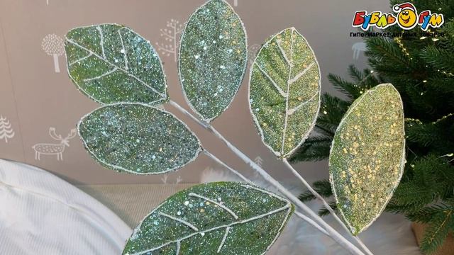 333076 Ветка с листьями декоративная с серебристым блеском салатовая 50см