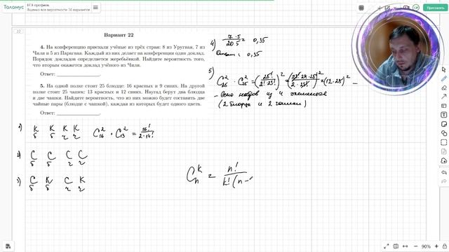 Вариант №22 Вероятность (задания 4-5) из Ященко 36 вариантов 2026 ЕГЭ профиль по математике.