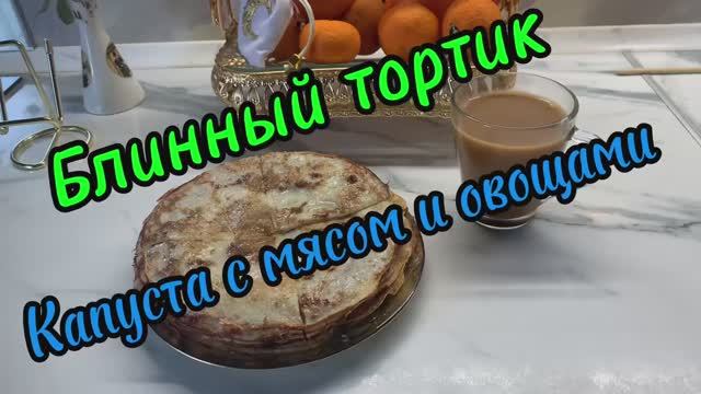 Блинный тортик! 🍰 Капуста с мясом и овощами!😋
