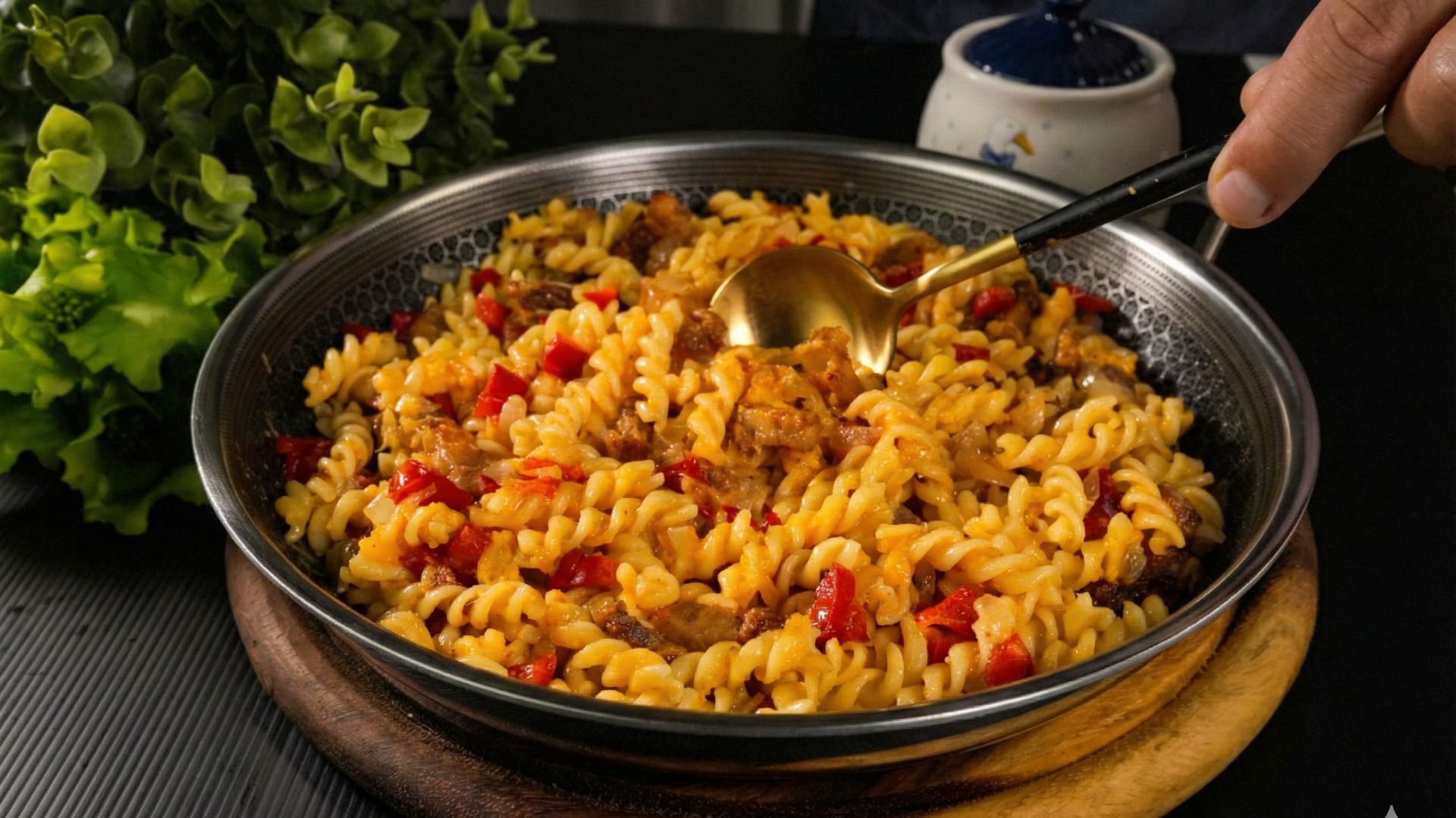 Привет, добро пожаловать! 📝 Ингредиенты: ⚫️Растительное масло. ⚫️Бекон -150 г (5.30 унций). Обжаривать бекон на сильном огне по 5-7 минут. ⚫️Лук - 1 шт. Обжаривать лук 2-3 минуты. ⚫️Красный сладкий перец -1 шт. Обжаривать перец с луком в течении 5 минут. ⚫️Макароны 250 г (8.8 унций). Варить до готовности. ⚫️Соль - 1 ч.л. ⚫️Желтки - 5 шт. Хорошо перемешать. ⚫️Соль/ Перец по вкусу. ⚫️Сыр пармезан - 50 г (1.7 унций). Добавьте бульон из макарон. Хорошо перемешайте. На разогретую сковороду переложите макароны. Добавьте яичную смесь. Хорошо перемешайте. Добавьте бекон и овощи. И также хорошо перемешайте. Готовьте так 2 минуты.