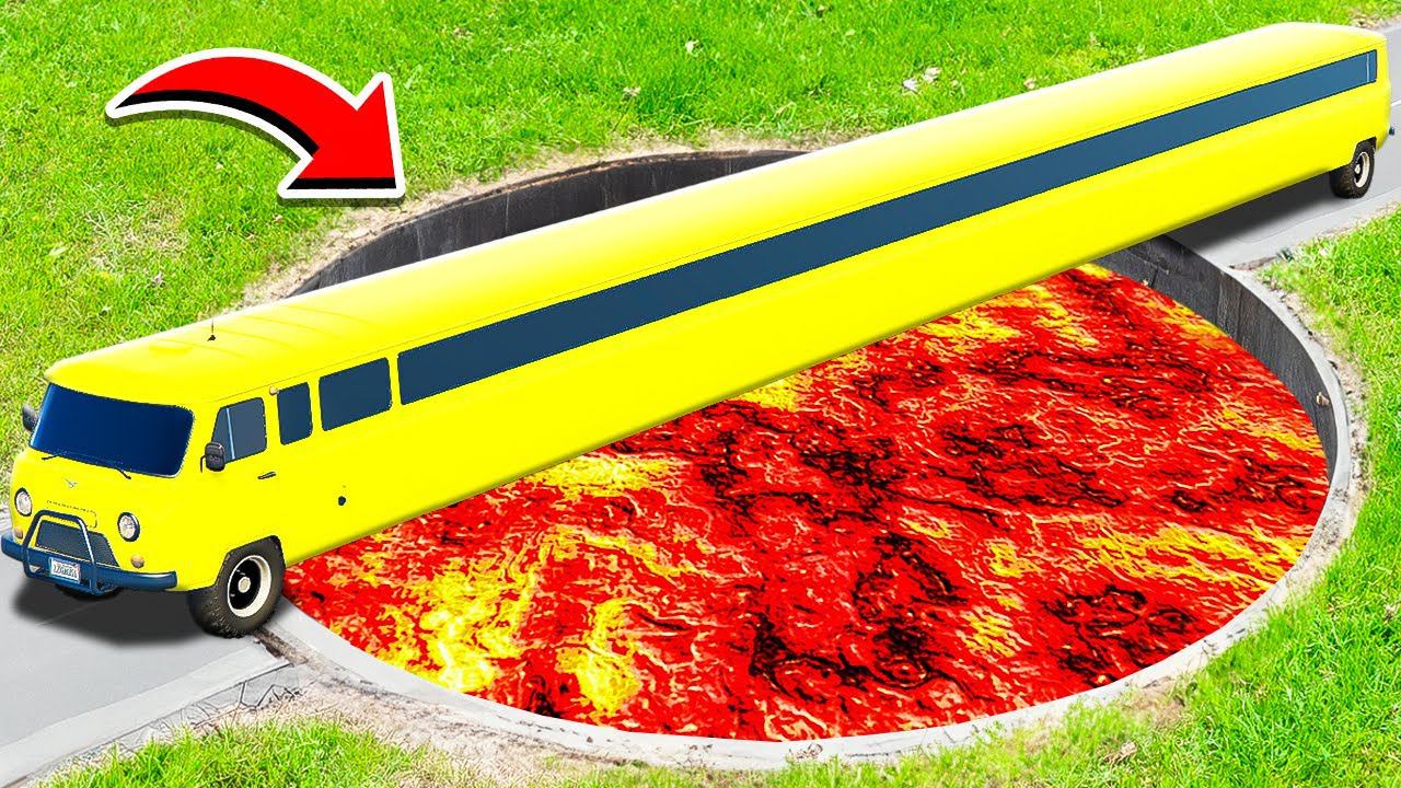 ПРОЕХАЛ ГЛУБОКУЮ ЯМУ С ЛАВОЙ НА САМОМ ДЛИННОМ ЛИМУЗИНЕ УАЗ БУХАНКА ГТА 5 МОДЫ МУРКА