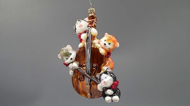 Ёлочная игрушка ручной работы. "Котята-виолончелисты" артикул. 00270AA Цену и наличие можно узнать в нашем интернет магазине. https://atlasartshop.ru/catalog/klassicheskie_igrushki/kotyata_violonchelisty/
