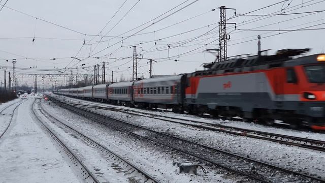 4 января 2022 года в 16:07 станция Голутвин рязанское направление Московская железная дорога spectacular passage EP20-061 with train number 102 Moscow-Adler at Golutvin station January 4, 2021 at 16:07 Golutvin station Ryazanskoe direction Moscowskaya railway