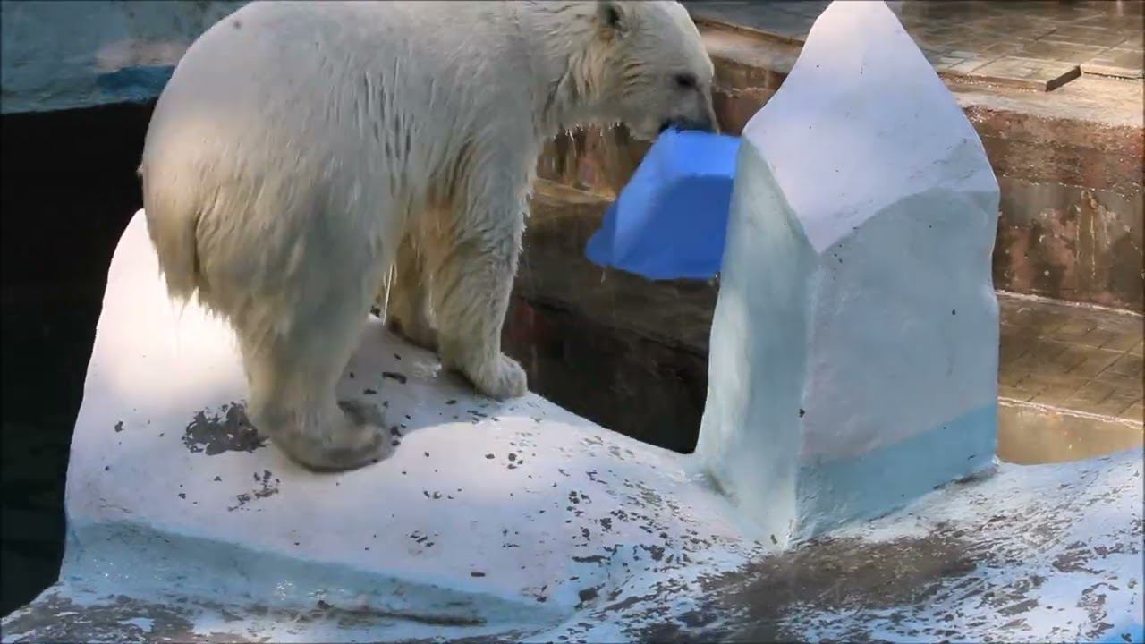 Герда родилась в Москве 20 ноября 2007 года. Её мама Симона, папа Врангель. В Новосибирск переехала 05.08.2008. В 2013 году у Герды и Кая родилась Шилка. В 2015 году она переехала в Японию. В 2015 году родился Ростик. 6 декабря 2018 года он переехал в Китай. В 2018 году родились Норди и Шайна. Данная пара молодых медведей находилась вне экспозиции зоопарка, поэтому посетители не могли их видеть. Передача молодых медведей в другой зоопарк не планируется, — ответили на запрос редакции в пресс-центре мэрии Новосибирска. Но Шайна 20 января 2024 года переехала в Ижевский зоопарк. Белые медведи одиночные животные. Как правило, миролюбивы по отношению друг к другу, но между самцами в брачный период случаются стычки. Взрослые самцы могут нападать на медвежат. Гон с марта по июнь. Продолжительность жизни — максимум 25—30 лет; в неволе рекорд долгожительства — 42 года. Вес очень крупных самцов в некоторых частях ареала 700 и даже 800 кг: есть данные о зверях весом до 1000 кг. Обычно вес меньше. Самки всегда не только меньше, но и значительно легче самцов. Так, самцы в восточной Гренландии в состоянии нормальной упитанности весят 400—450 кг, хорошо упитанные — до 500 кг, самки, даже очень сытые, здесь же редко весят больше 350—380 кг, т. е. их вес составляет около 75% веса самцов. Длина тела на 3-й день после рождения 28—32 см, средний вес — около 755 г (650—840 г). На 26-й день длина тела увеличивается незначительно — до 35—38 см, а вес возрастает до 1125—1275 г. В возрасте 60 дней самцы весят около 7 кг, самки — около 6 кг при длине тела у первых 58—60 см, у вторых 54—58 см. В возрасте 4 месяца медвежата достигают веса 22—23 кг, в 6-месячном возрасте при длине около 110 см — 40—43 кг, в 8-месячном — 58—62 кг. Длина тела в возрасте с 6 до 9 месяцев нарастает по 6—7 см в месяц. Во время зимнего сна рост почти прекращается. В зоопарке медведей кормят утром морской рыбой, хлеб с рыбьим жиром внутри, морковь, яблоки, морская капуста, яйцо дают сырое. Медвежат подкармливают молоком из соски. На ужин мясо (говядина, конина, куры или индейка). Летом и осенью арбузы, дыни, ранетки, кабачки, тыквы, огурцы. Когда показательное кормление летом бросают живую рыбу. Медвежата с медведицей находятся до 2-х лет. 16 декабря 2022 года Герда родила 2-х медвежат. И это две девочки! Имена дали 25 июня. Медвежат зовут Стрелка и Белка. Обзор вольеров белых медведей https://www.youtube.com/watch?v=mAt_b7JD0B4&list=PLGvf0V-rAHxkpGKJaWIZIUxRKgKiqV3xZ&index=17&t=0s