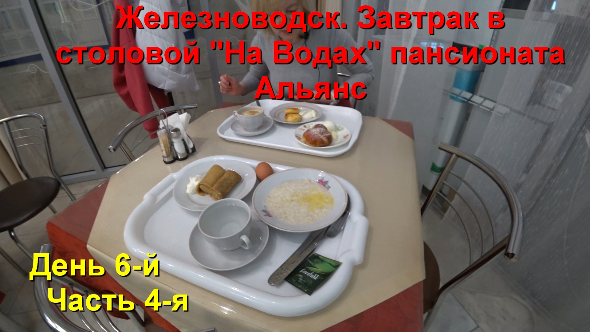 После недолгой фотосессии, время как всегда поджимало, мы отправились в сторону пансионата Альянс в замечательную столовую "На Водах". Большой неожиданностью было когда к нам в столовой подошёл менеджер этого пансионата и предложил ознакомить с кое какой информацией об этом пансионате. Люда осталась выбирать завтрак, а я двинулся за менеджером по вестибюлю слушая его рассказ и записывая на камеру. К сожалению почти в самом начале нашего экскурса, на моём передатчике разрядилась батарея и видео дальше записалось без звука.